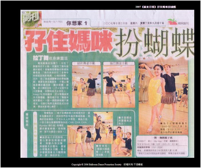 <蘋果日報> 孖住媽咪扮蝴蝶-拉丁舞親子班