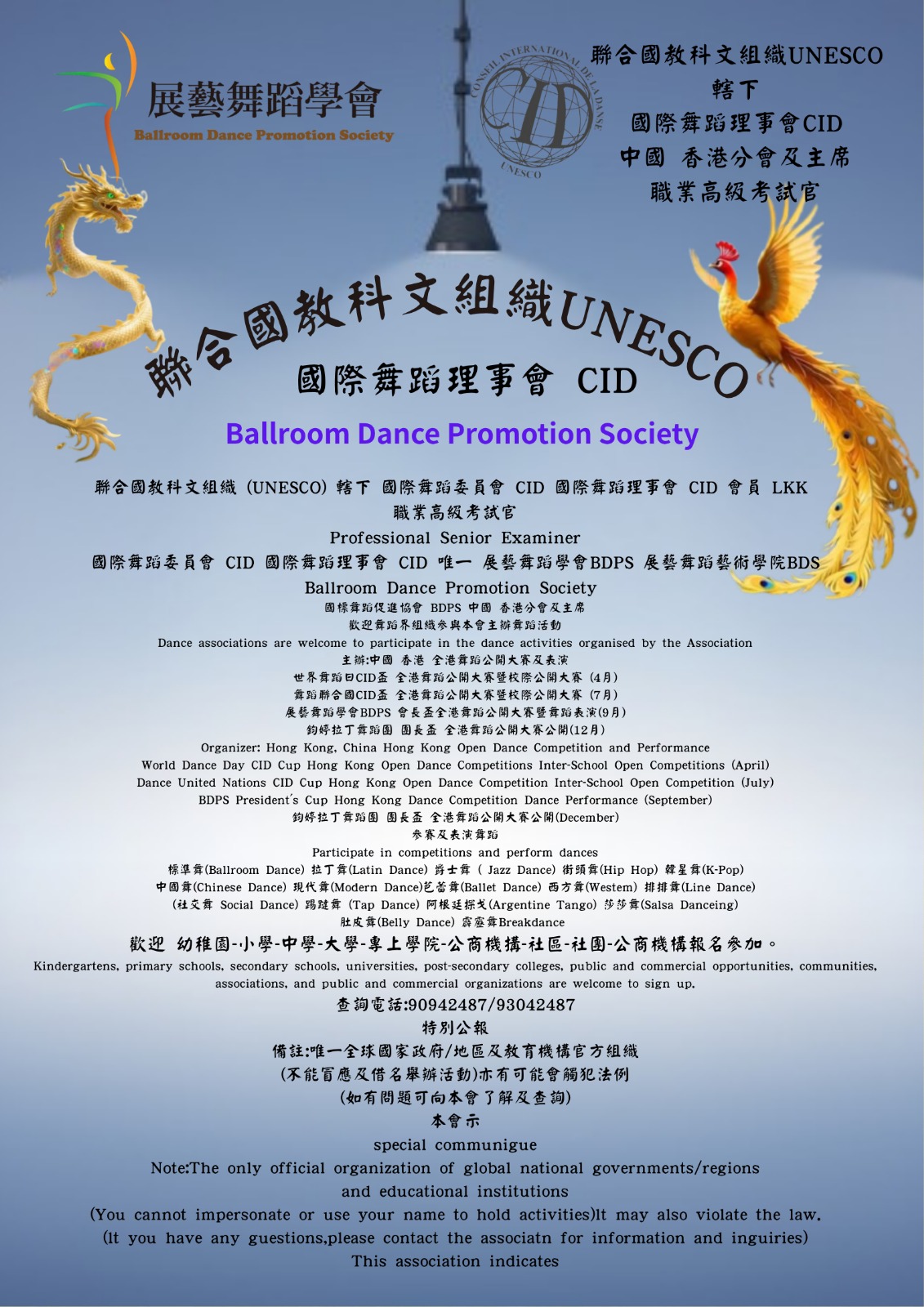 國際舞蹈理事會 CID 展藝舞蹈學會BDPS 國標舞蹈促進協會BDPS 中 香港分會 主辦舞蹈活動