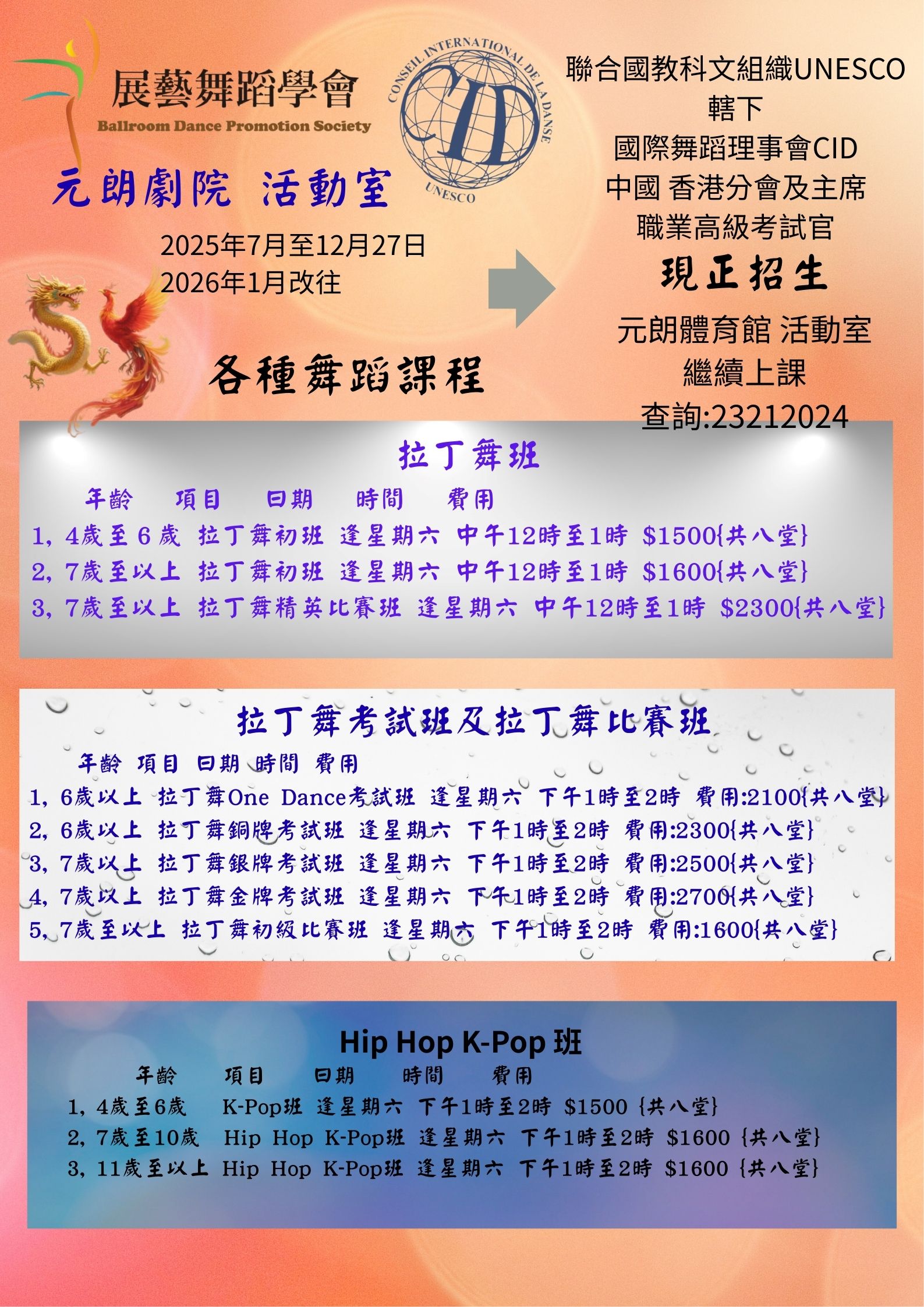 深水埗體育館 活動室 各項舞蹈班 現正招生