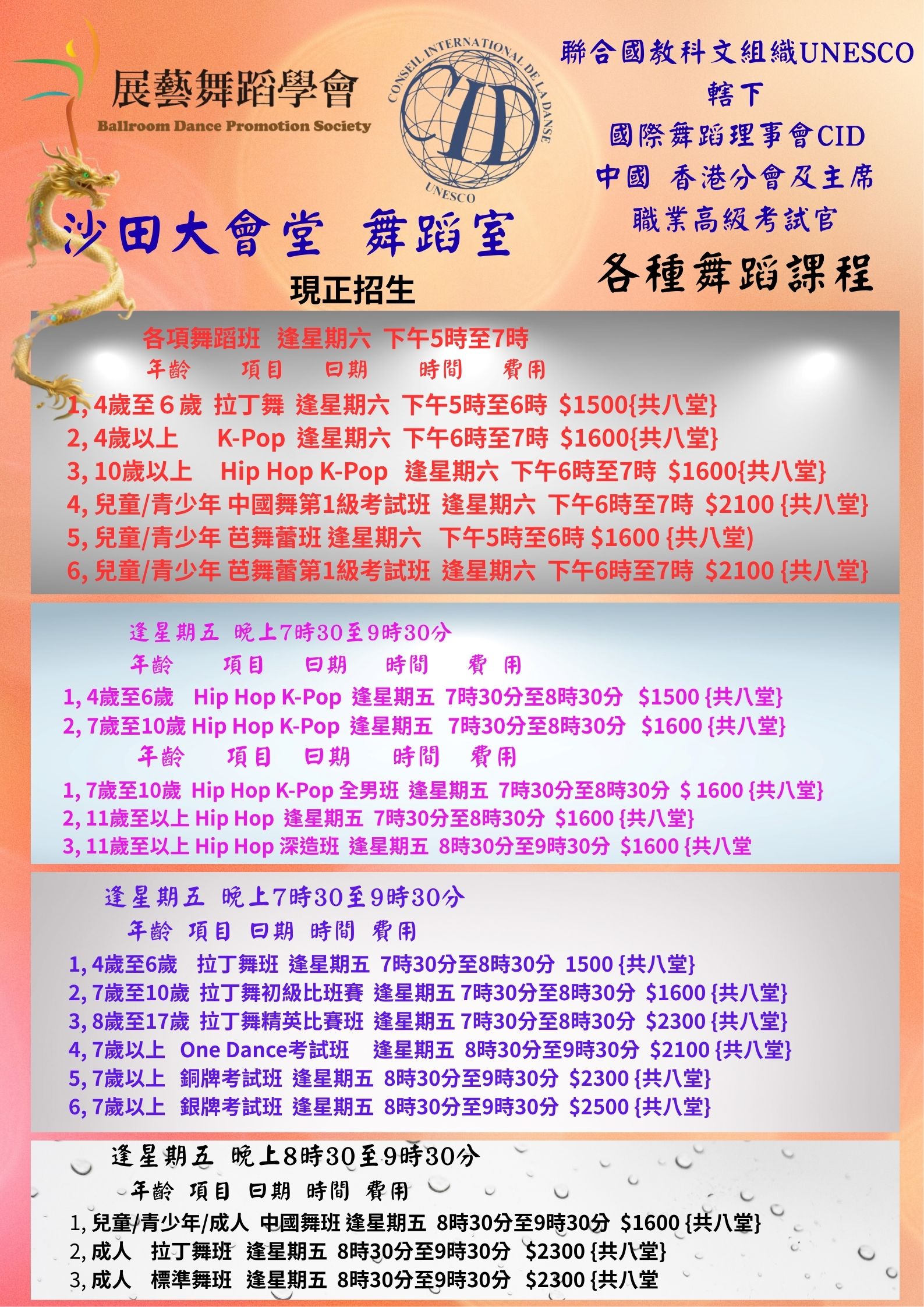 沙田大會堂{舞蹈室} 各項舞蹈班招生