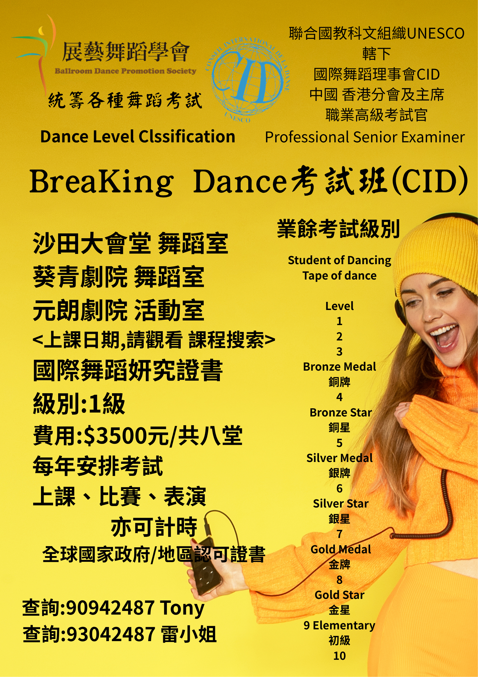 BreaKing 國際舞蹈妍究證書課程(CID)1-10級